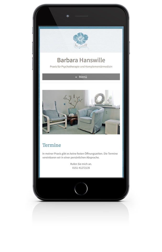Ein konsequentes Erscheinungsbild für die Praxis für Psychotherapie und Komplementärmedizin von Barbara Hanswille (welches seine Fortführung auch in der Inneneinrichtung der Praxis findet).